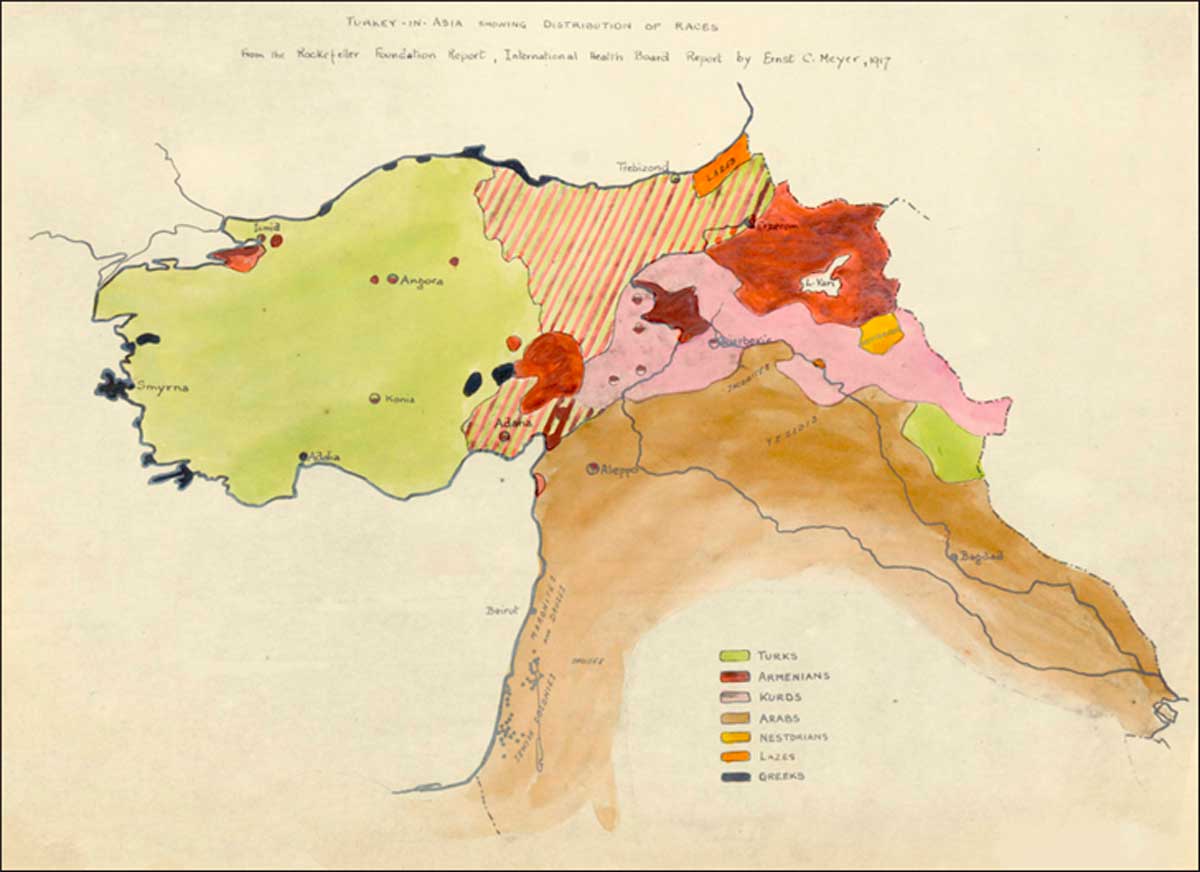Mapas que muestran el Imperio Otomano en su máxima extensión en 1683 y su tamaño en 1914-1917, también su diversidad étnica y los millets; los asentamientos judíos son imperceptibles