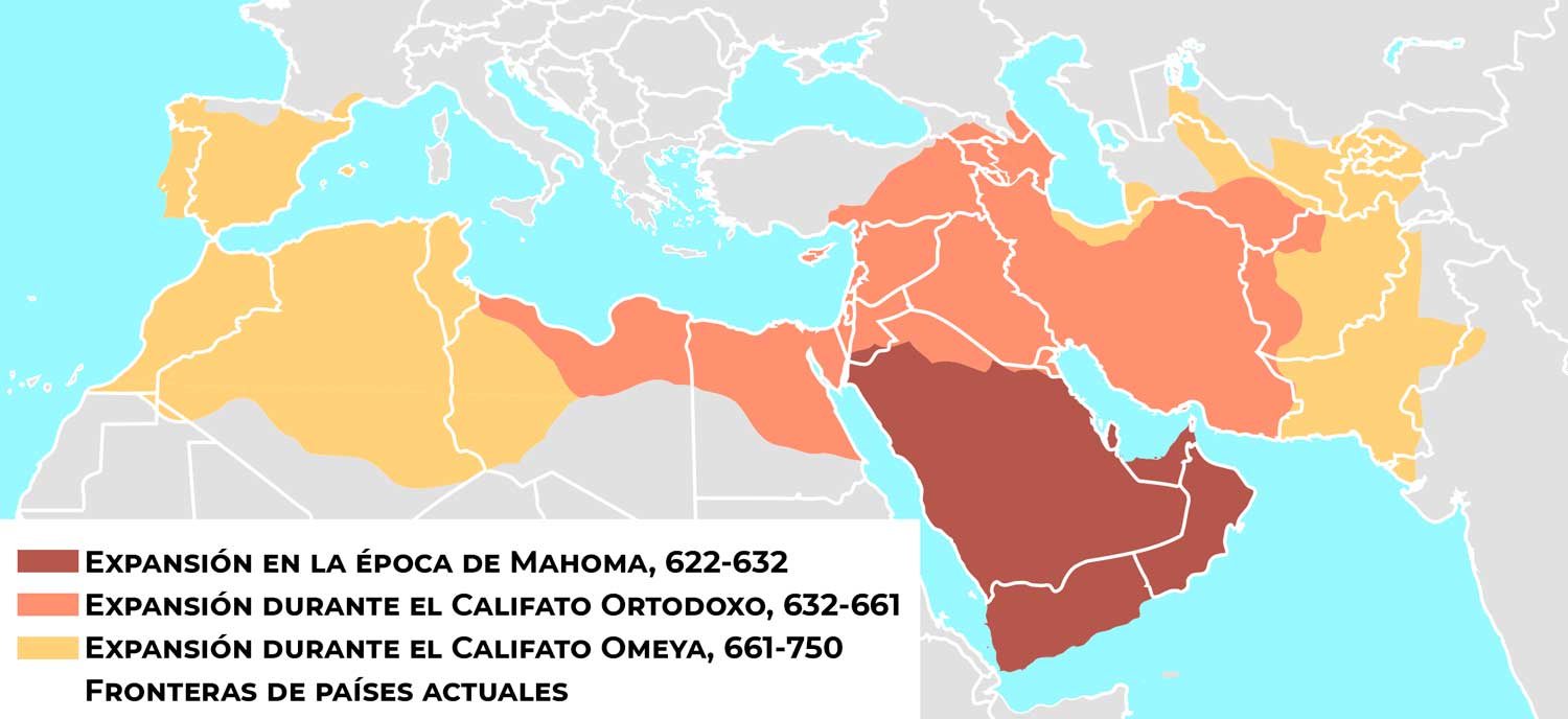 Los deseos de Alá (o de Mahoma) llevaron a los árabes a dominar un imperio desde lo que hoy es Pakistán hasta la península ibérica, pasando por el norte africano. El Califato Omeya fue el imperio más extenso hasta entonces, es el séptimo de la historia. Su extensión es el sueño del arabismo, que mezcló lo árabe con lo musulmán. De sus cuarenta a setenta millones de personas, casi la mitad eran cristianos, y 5-10% judíos. Eran libres siempre que pagaran sus respectivos impuestos. El Califato tuvo carácter secular: no se rigió estrictamente por lo religioso, y (por eso) duró un siglo. Sus ciudadanos musulmanes más fanáticos se rebelaron y depusieron la dinastía (la opinión pública puede poner y sacar reyes, y los fanáticos no dudan en empezar guerras).