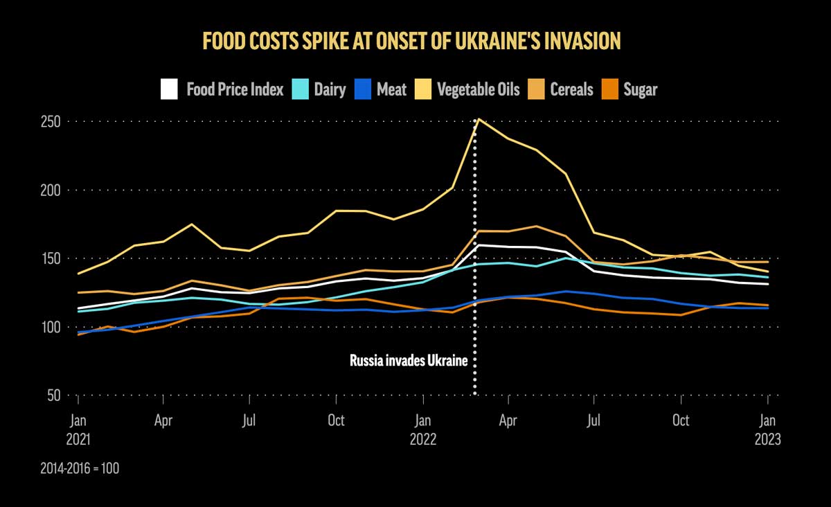 — La crisis mundial no ha sucedido: no hubo hambre y no faltó gas; Alemania fue capaz de modificar su matriz energética y cambiar sus proveedores en tiempo récord. Hubo un pico en los precios de gas, petróleo, energía y algunos alimentos, pero todo ha vuelto a la normalidad en el marco internacional y los mercados. Y hay incluso precios más bajos que hace una década. Recurro a Taleb de nuevo, que no se cansa de repetir: I've never seen a squeeze not followed by a glut. Si lo traduzco pierde gracia, pero dice que nunca ha visto un desabastecimiento o insuficiencia repentinos en un mercado a los que no haya seguido una avalancha o sobreabundancia de oferta. Pasó con los barbijos, con las bicicletas, con los hoteles 5 estrellas en Santa Cruz. Y es que somos buenos para leer una necesidad y muchos reaccionamos a tiempo para suplirla, provocando, en masa, una sobre-reacción, un exceso de stock, una baja de precios. Recurro a tres gráficos de Associated Press para contar mejor esta historia, y la historia de que los mercados reaccionan ante la expectativa de que algo suceda, así que los eventos ya están priced in anticipadamente: