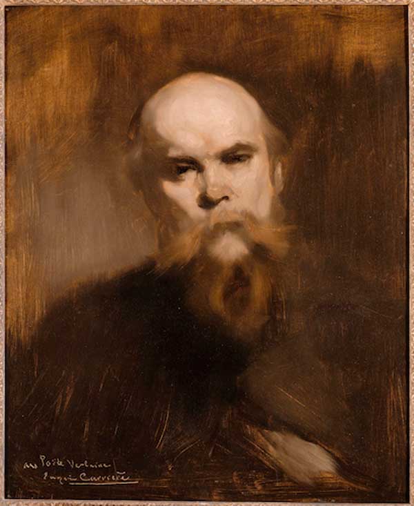 Estaba igual al simulacro en que ha perpetuado su figura el arte maravilloso de Carriére. Se conocía que había bebido harto. Respondía de cuando en cuando, a las preguntas que le hacían sus acompañantes, golpeando interminentemente el mármol de la mesa. Nos acercamos con Sawa, me presentó: «Poeta americano, admirador, etc.». Yo murmuré en mal francés toda la devoción que me fue posible, concluí con la palabra gloria... Quién sabe qué habría pasado esta tarde al desventurado maestro; el caso es que, volviéndose a mí, y sin cesar de golpear la mesa, me dijo en voz baja y pectoral: «¡La gloire!... ¡La gloire!... ¡M... M... encore!...». Creí prudente retirarme, y esperar verle de nuevo una ocasión más propicia. Esto no lo pude lograr nunca, porque las noches que volví a encontrarle, se hallaba más o menos en el mismo estado; a aquello, en verdad, era triste, doloroso, grotesco y trágico. Pobre «¡Pauvre Lelian! ¡Priez potir le pauvre Gaspard!...».